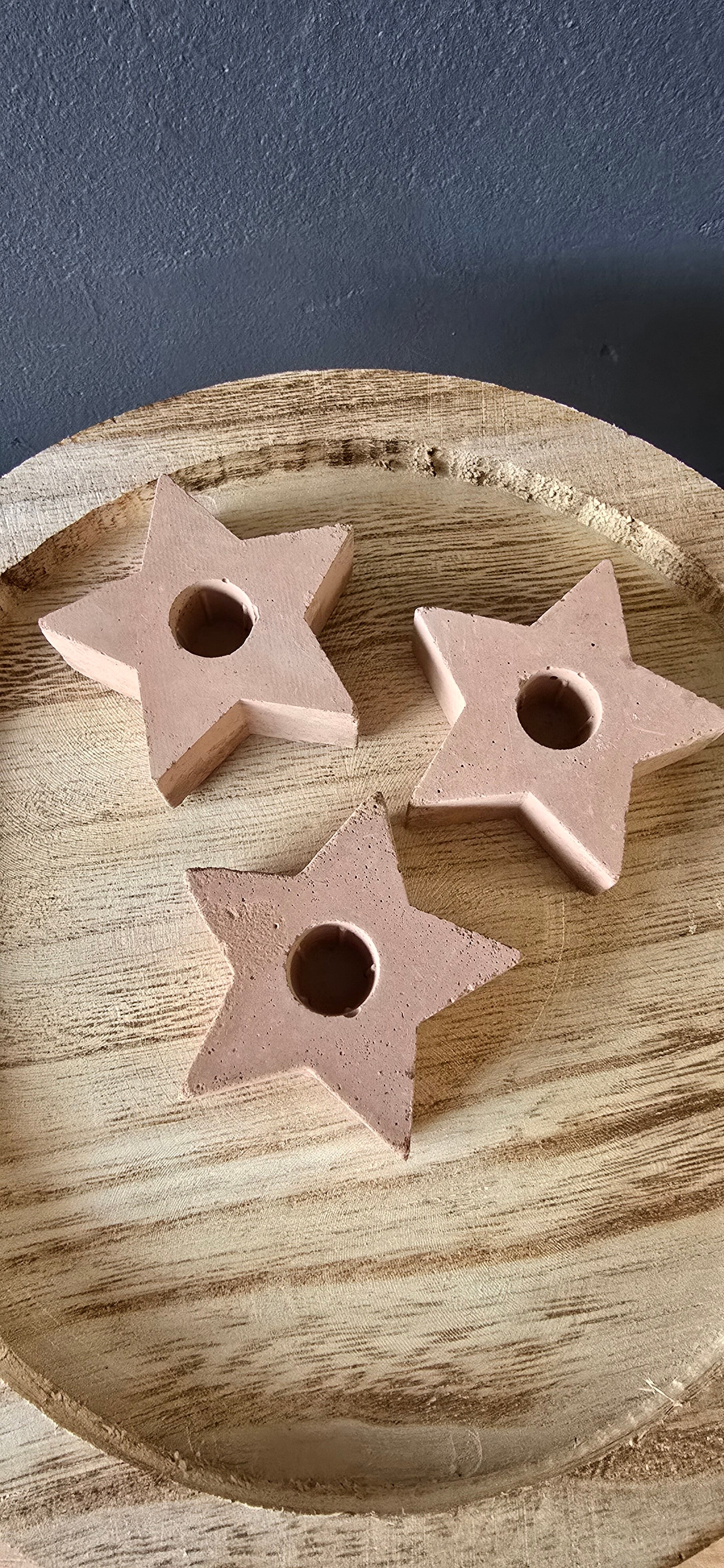 Giftset: 2 betonnen ster kandelaars + potloodkaarsjes