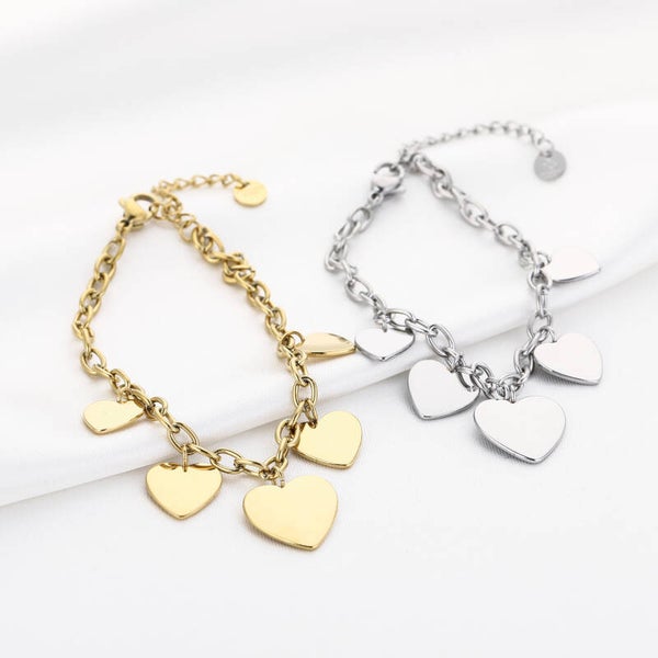 De stevige schakelketting is versierd met meerdere glanzende hartbedels, wat zorgt voor een stijlvolle en romantische uitstraling.